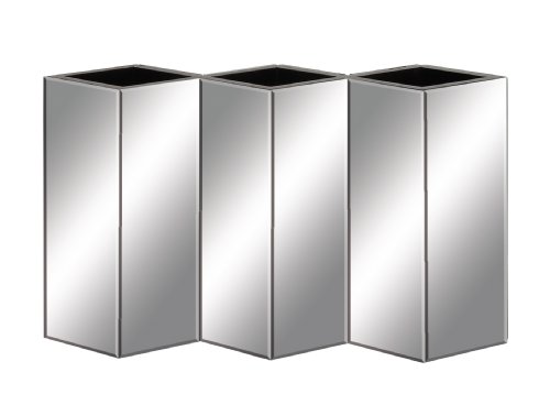 Plutus Brands the sharp wood mirror vase. Features wood mirror vase dimensions: 16 inches (W) x 4 inches (d) x 10 inches (H) wood mirror vase color: silver made from: wood, mirror description: are you looking for three vases that are connected to each other that will hence be displayed together looking for this vase to look like it is from the technological age well, search no further because this wood mirror vase in three will definitely take your fancy. With amazing and sleek looks, this vase has a mirror surface for its body. Fairly tall, you can keep various flowers in it. So, for example, you could place three types of flowers in all three compartments. Additionally, it has been made using quality materials; this ensures that it will stand the test of time. People won't just see flowers in it, but will also be attracted to their own reflection which this vase will also display. Perfect as a gifting item too, you may gift it to the male folks-the crisp and sharp lines of it will take their fancy. Indeed, this is a must have vase.Feature