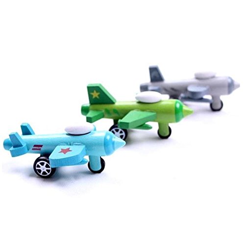 ACTLATI 12 Pcs/Set Toddler Mini Plane Toys Cartoon Wooden Helicopter Model Cute Airliner Toy