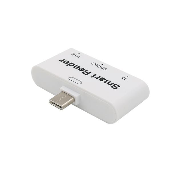 ★商品紹介商品名 USB Type-C to USB+SD(HC)/TF/MicroSD(HC) カードリーダー色 ブラック、ホワイトサイズ:H39×W56端子: USB3.1 Type C オス    USB2.0 ポート メス    micro USBポートメス特徴●USB Type-C to USB+SD(HC)/TF/MicroSD(HC) カードリーダーは5Gbps以上の高速のデータ転送ができます。●小型で持ち運びも便利です。●MacBook、Googleノートブック、Letvその他のタイプ-Cモデルのデバイスに対応します。●ドライバー必要なし●タイプCソーシングポートを接続する前にカードまたはUSBデバイスを挿してください。●2カードスロットは同時に作業することができない。保証期間 お買い上げより1ヶ月