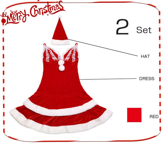 サンタ コスプレ セクシー レディース クリスマス 衣装 帽子 キャミワンピース 胸元vネックライン ミニ コスチューム サンタコス 仮装 変装 女性 大人 服 セットアップ かわいい サンタクロース パーティーグッズ イベント用品 余興 xmas Christmas cos