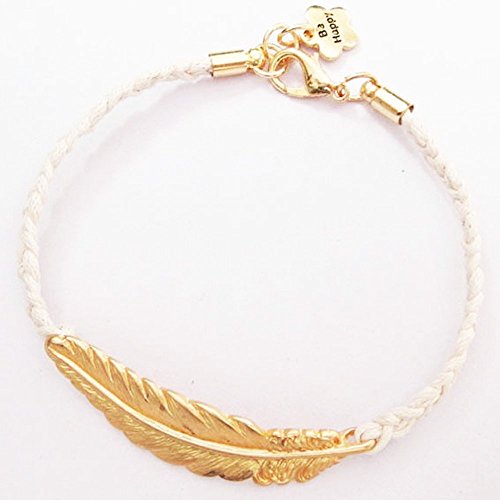 -. Title : 【ノーブランド品】フェザーブレスレット 羽根モチーフ ミサンガ ブレス ジュエリー アクセサリー (ホワイト)