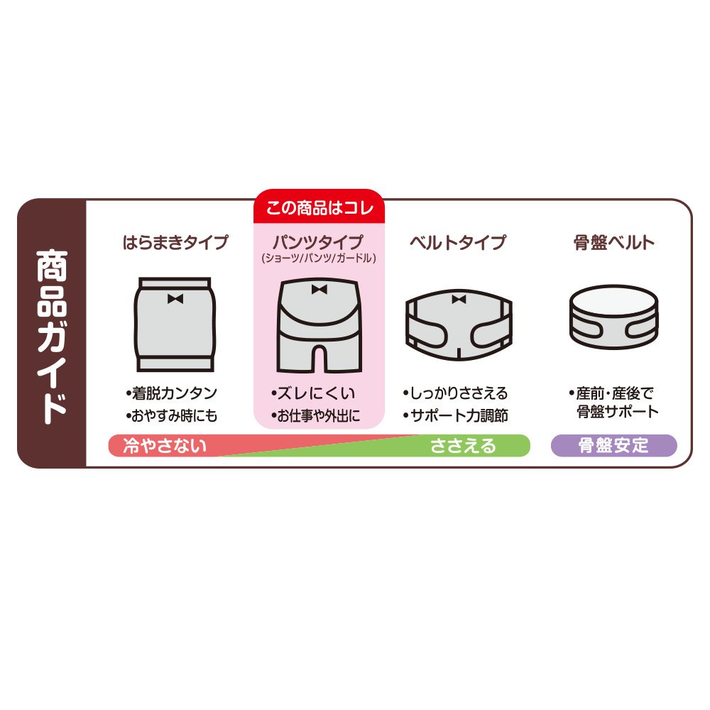 The integral type external belt supports the pelvic part firmly from both sides, so it will not shift because it is a pants type.