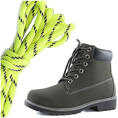 DailyShoes Women's Lace-Up Ankle Padded Collar Work Combat Hard Toe Booties, Neon Yellow Black,...