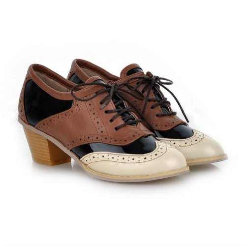 -. Title : Charm Foot Vintage Womens Low Heel Lace up Oxfords Shoes Casual Leather Shoes