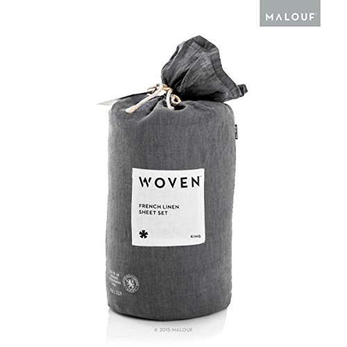 WOVEN Soft, Light French Linen Sheet Set with Vintage Wash - King - Charcoal