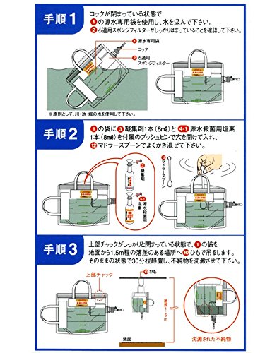 지진 등의 재해시에 음료수를 만들 수 있는 비상용 정수기입니다.