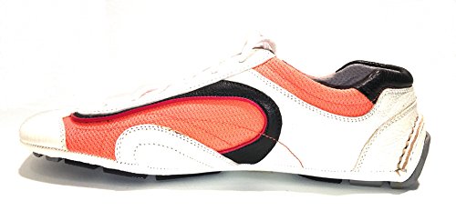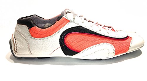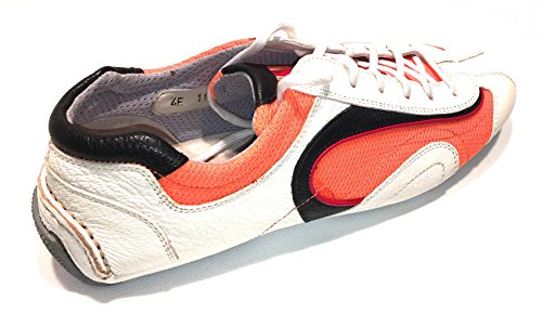-. Feature : low-profile sneaker. / Two-tone leather upper. / Lace-up front. / Embossed logo on tongue. / Cushioned insole.
