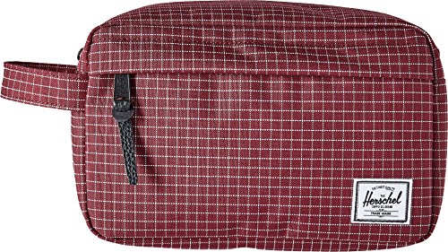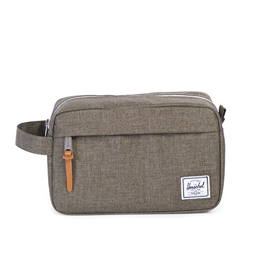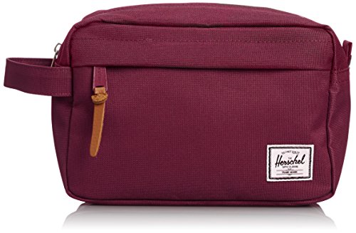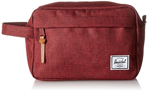 Limited lifetime warranty. Imagine being on the trip of a lifetime . . . and then realizing you don't have any of your toiletries. Avoid that problem and always come prepared with the convenient Chapter from Herschel Supply Co. A toiletries bag made of tough polyester and nylon. Main compartment features mesh organizational pockets for toiletries. Top zip closure for easy access. Additional front compartment with zip closure. Fully lined with cotton-poly fabric. Grab handle on side of bag. Black colorway has been updated to feature black zipper detailing. Shell: 100% polyester.Lining: 100% nylon. Measurements: Bottom Width: 9 in Middle Width: 9 in Top Width: 8 1⁄4 in Depth: 4 1⁄2 in Height: 6 in Handle Length: 7 3⁄4 in Handle Drop: 2 in Weight: 6 oz This product may have a manufacturer's warranty. Please visit the manufacturer's website or contact us at warranty@support.zappos.com for full manufacturer warranty details.Feature