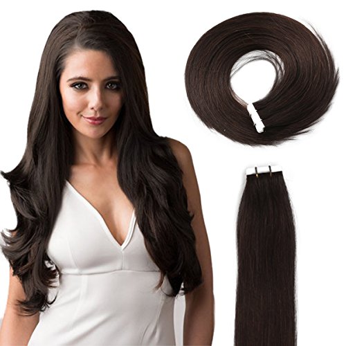 - ★DETAIL★ - 22inch-50g/pack- 2#dark brown tape in human hair can be Treated & Styled (Washing, Strengthening, Curling, Etc.) Like your Own Hair.Extra 12 Pieces of New Tape Replacement Included.