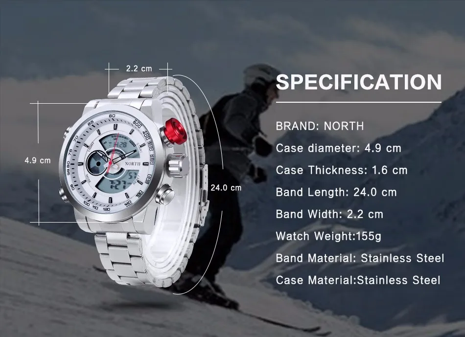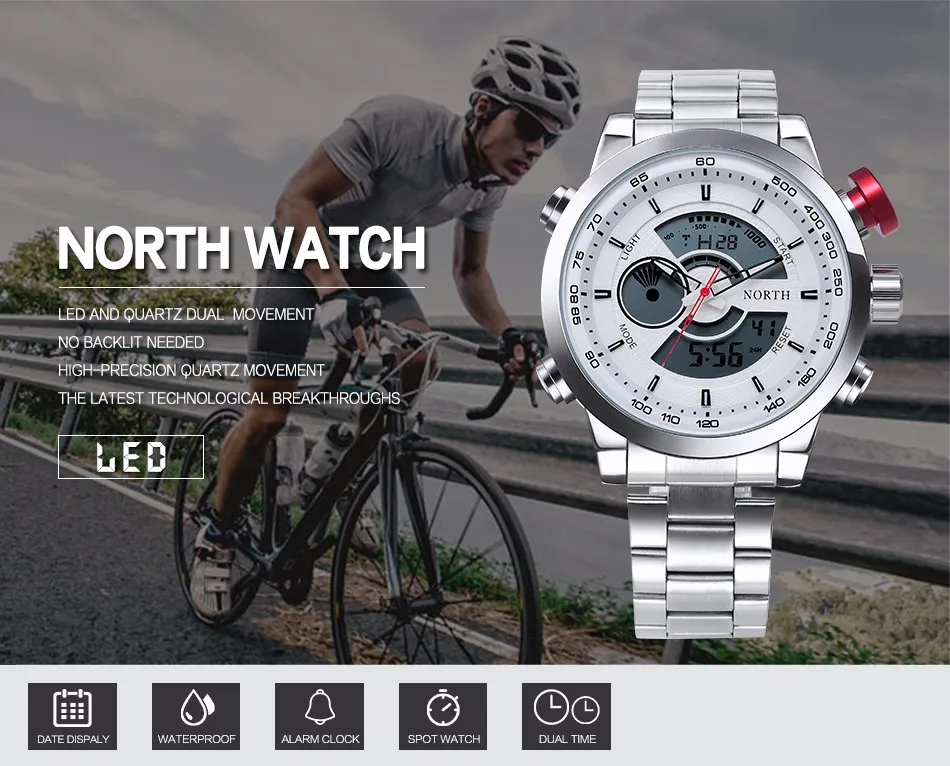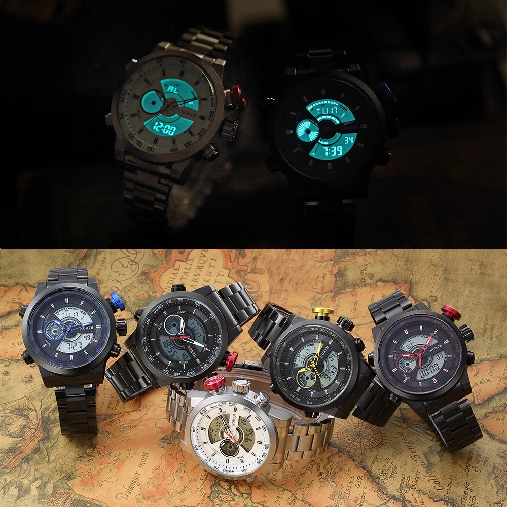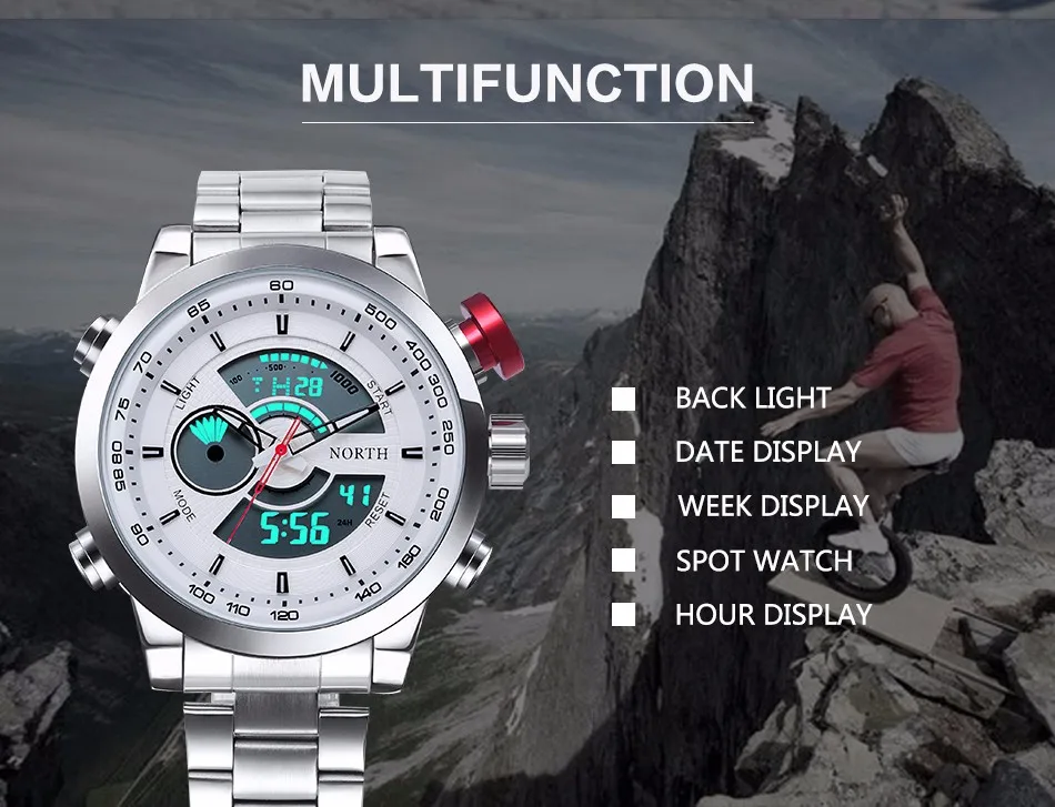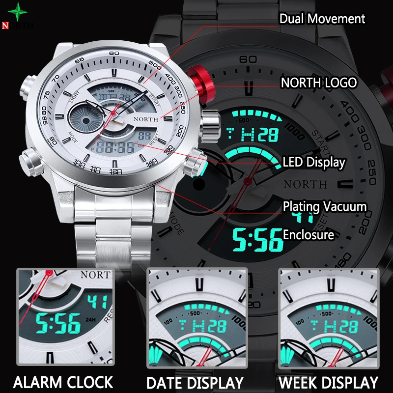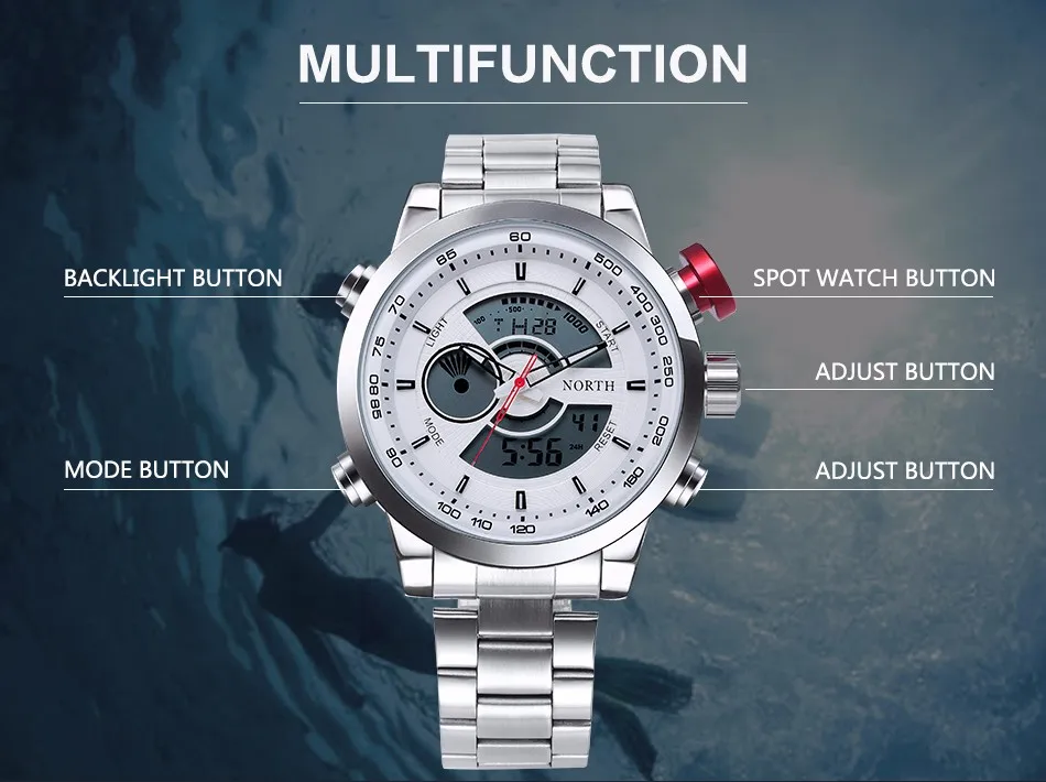 Feature:Complete Calendar,Stop Watch,LED display,Water Resistant,Back Light,Chronograph,Swim,Alarm,Repeater