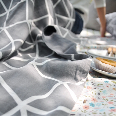 앞면 프린트된 2중거즈 블랭킷 뒷면 무지 워싱거즈로