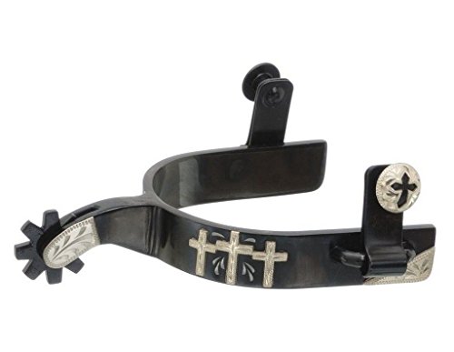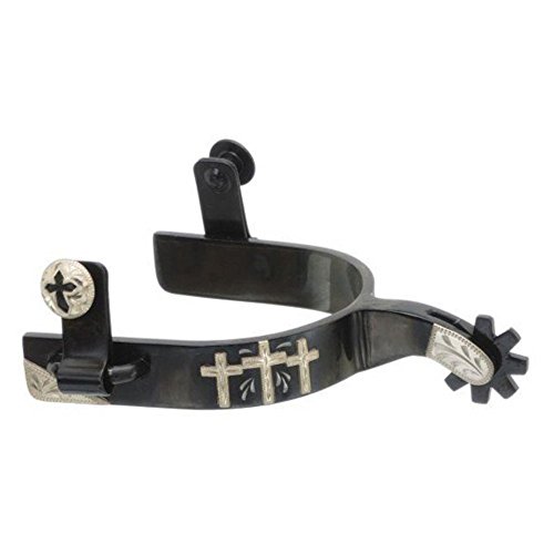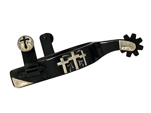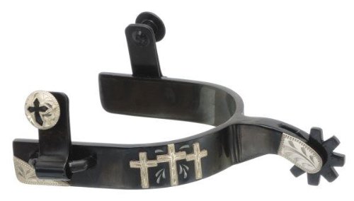 Product DescriptionBlack steel spurs with 8 point rowel features 3 engraved silver crosses. JTS52473210