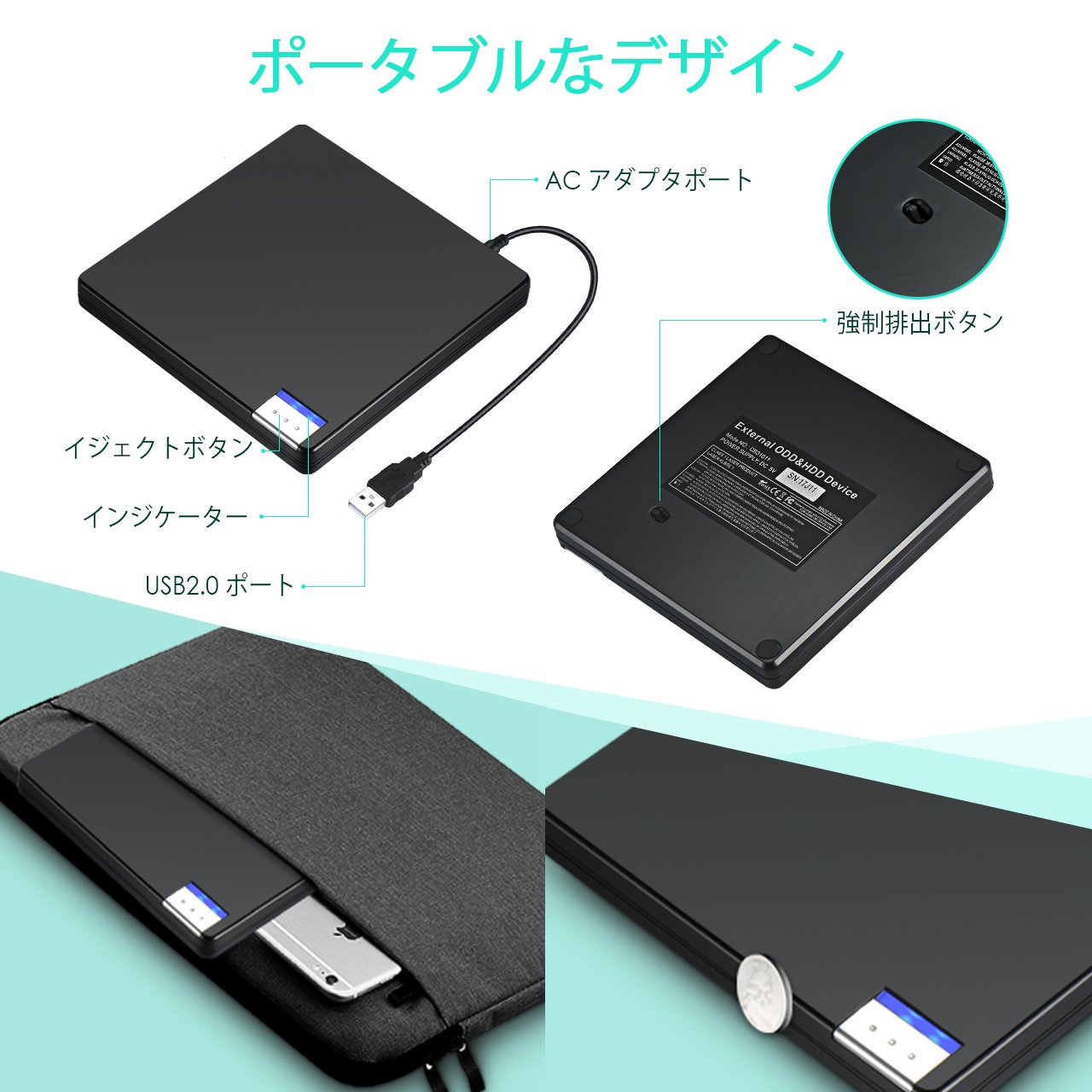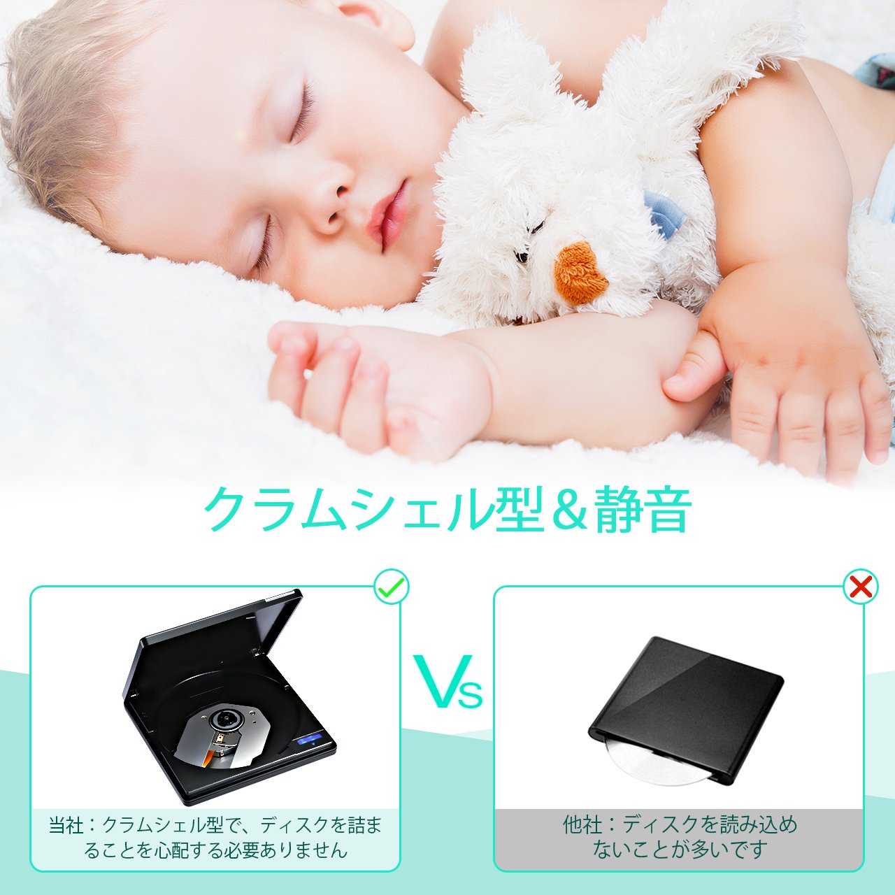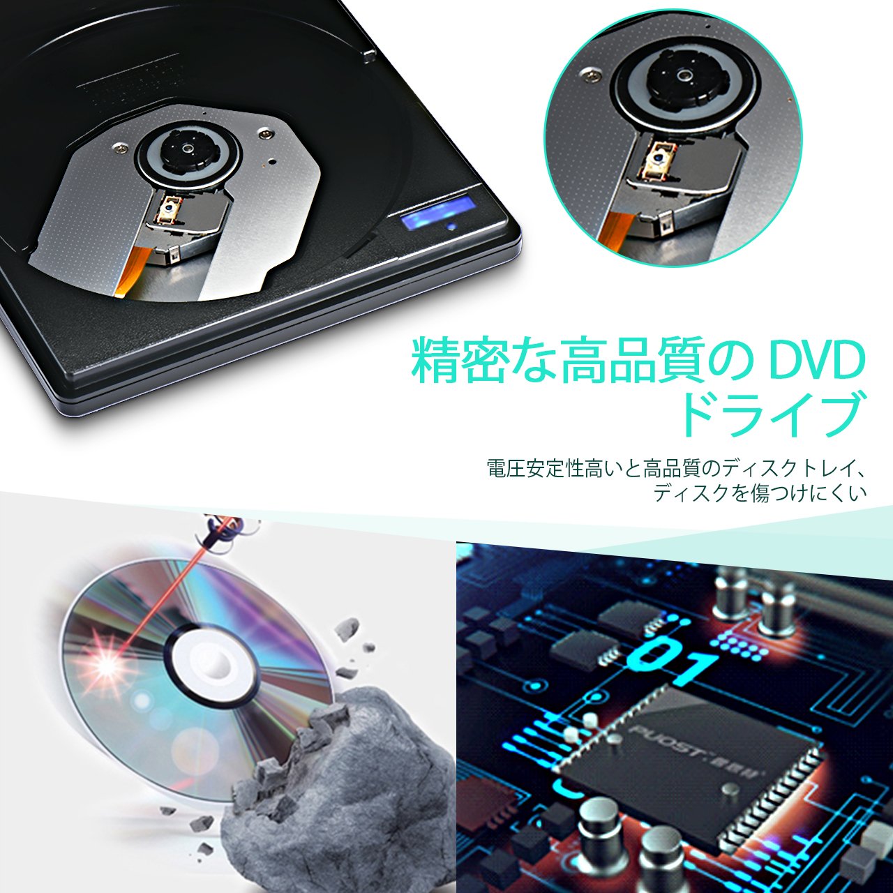 ● This DVD drive works quietly without hindering work or sleeping when the disc is in.