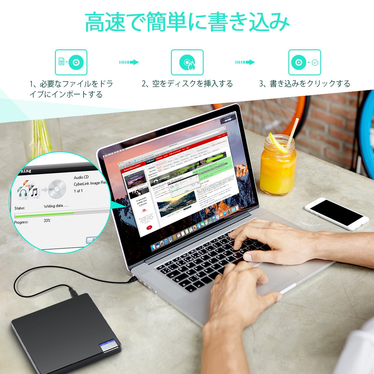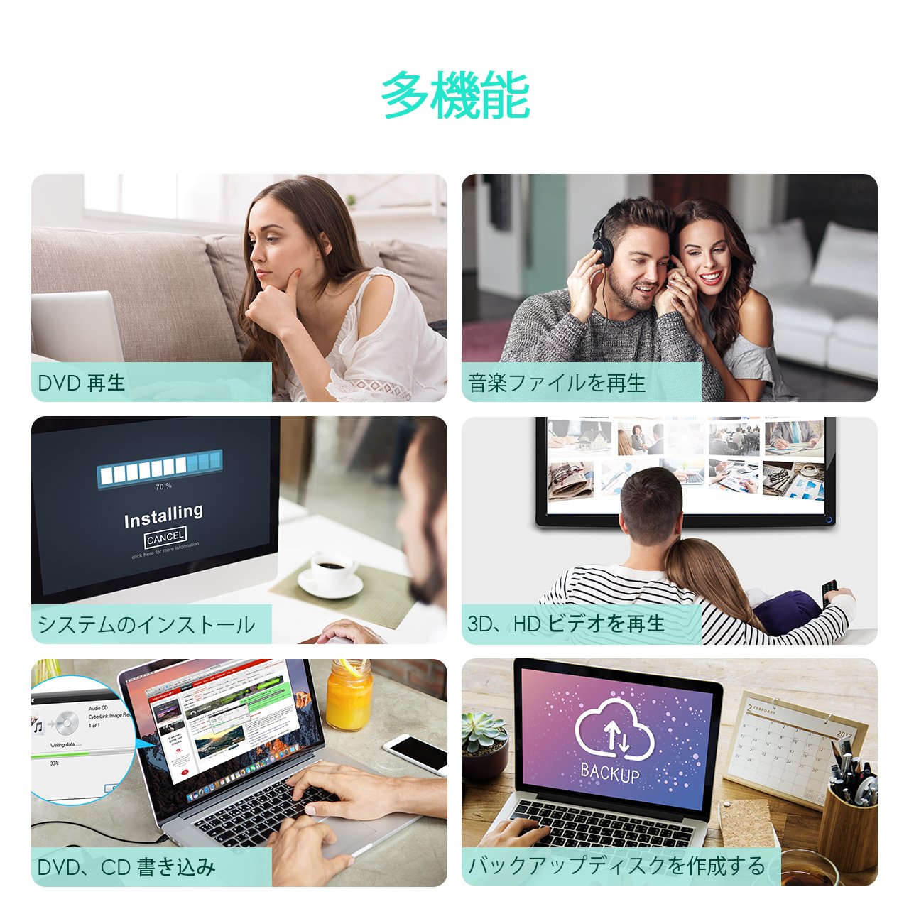 ● By using this convenient DVD drive, you can watch DVD / CD movies, burn images such as music and videos to CD / DVD, install the operating system of PC (Mac OS can not be used), install software