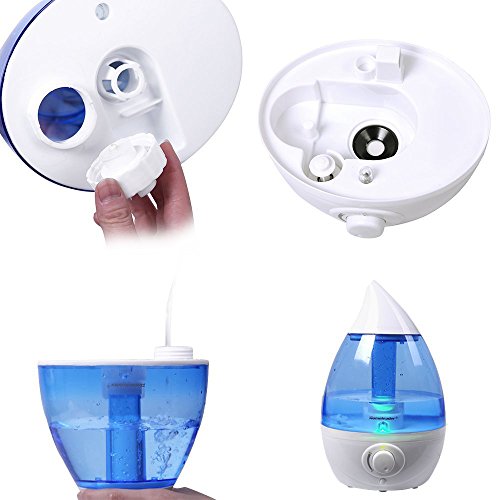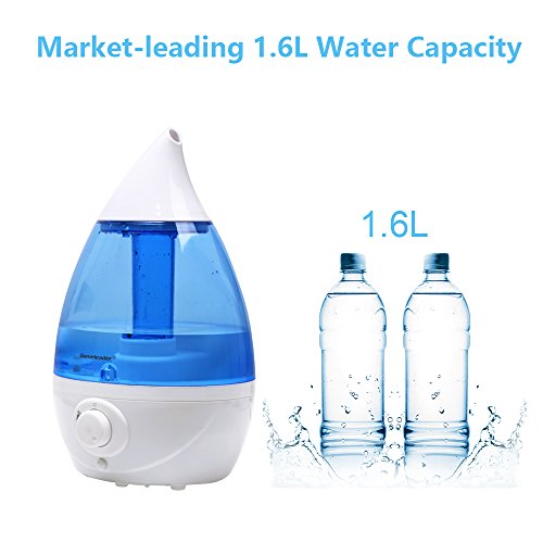 LARGE CAPACITY AND GREAT MIST OUTPUT: This drop shape air humidifier can hold up to 1.6L of water and produce up to 300ml of moisture per hour. It can run up to 11 hours of continuous output. Automatic power-off function starts when water has been used up which ensures safety.