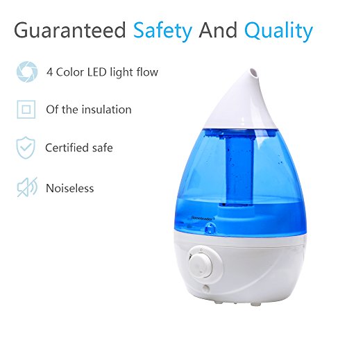 NOISE-FREE TECHNOLOGY AND 100% SAFETY: With adopted ultrasonic technology, homeleader air humidifier is extremely quiet - less than 30dB. The humidifier has inside low water protection in case of lack of water.