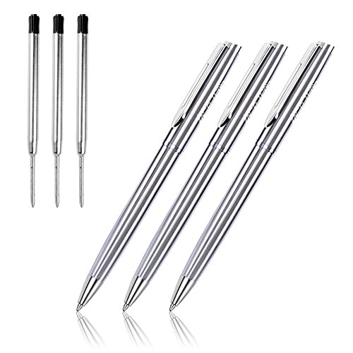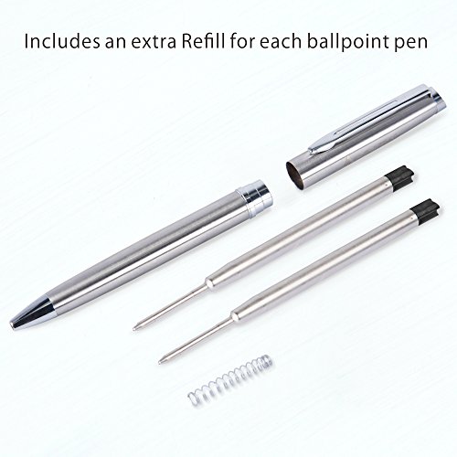 -. Feature : Black ink, 1.0mm medium point, help you smoothly write down your thoughts / Business style steel ballpoint pen packs with 3 extra refills, satisfies your daily use / Twist this metal grip left and right to retract the ballpoint pen / Each ball pen has a durable metal clip that lets you easily fasten it to a notebook, binder, or pocket for convenient use / The Ballpoint pens are the best gifts for your friends, family and colleagues; 100% SATISFACTION GUARANTEE: Ace Teah stands behind our Each BALLPOINT PENS, if you are not happy with our steel pens, simply let us know, 100% refund or replace, no return required