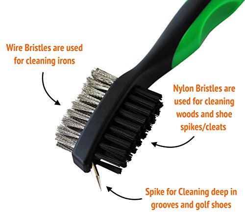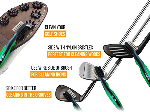 -. Feature : BEST POWERFUL CLEANING FOR OPTIMUM SPIN ON THE BALL AND BETTER CONTACT: Wire bristles for quick and efficient cleaning of irons while on the fairway. / With a unique, ergonomic revolution Voplop design, this golfing world brush fits snugly in your hand and will work with you, not against you as you chip away at dirt on your clubs. / Two tone, black and red or black and green golf cleaner brush sure to get looks on the course. Perfect for the avid golfer who enjoys a clean club for each swing. / Great COMFORT equipment kit: The retractable 2 ft. zip-line carabiner makes it easy to attach to your golf bag for blazing fast access. Nylon bristles for easy cleaning tool of woods and shoe spikes/cleats. Sharp pick for stubborn dirt and grime in groove (Comes with plastic covers). / Voplop Top Brush PERFECT accesories FOR CALLAWAY, TAYLORMADE, BIDGESTONE, CLEVELAND, TITLEIST, MIZUNO, ADAMS, WILSON, COBRA, PING, NIKE and other Leading Irons, including Sand Wedges, Golfing, Training aids, Lob Wedges, Staff sporting set items, Gap Wedges, Frogger, Grips, Approach Wedges, and other Golf Utility Clubs. VopLop global brushes Perfect gifts ideas for men and for women. Colors of brushes great fit for him, for her, for dad, for kids.