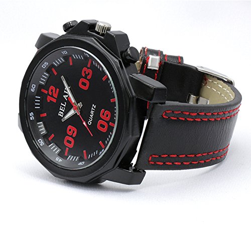 -. Feature : 文字盤:約50mmx約50mm  厚さ:約11mm / 重さ:67g  ベルト幅:22mm / 腕回り:170mm~205mm / 素材:ステンレススティールバック、 合金、PUレザー(ベルト) / ムーブメント:クォーツ