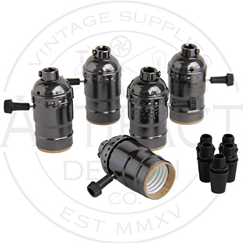 SET OF 5 METAL SHELL NICKEL BLACK MEDIUM BASE INCANDESCENT BRASS VINTAGE LIGHT SOCKET LAMP HOLDER WITH REMOVABLE TURN KNOB , GREAT FOR INDUSTRIAL VINTAGE DIY PROJECTS