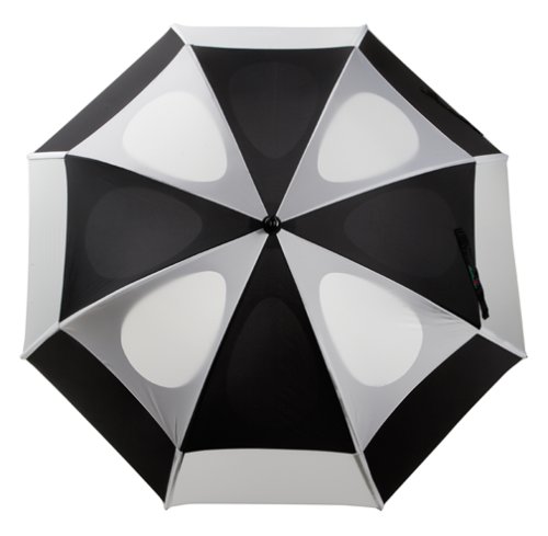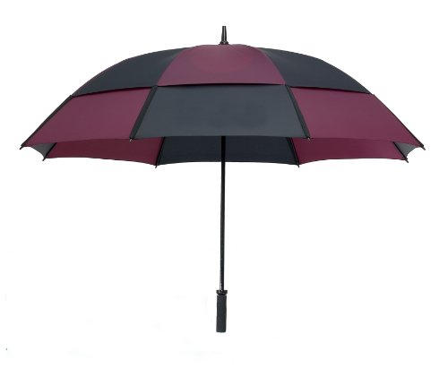 -. Feature : Pro Series Gustbuster Umbrella for golf with a 62-inch diameter and rubber comfort grip handle / Patented, double canopy design will not invert in winds of 55+ miles per hour / Lightning resistant, lightweight, super-strength fiberglass shaft / High impact, injection-molded protective ferrule fits into smallest golf bag holder / Pinchless open/close release system; limited lifetime warranty