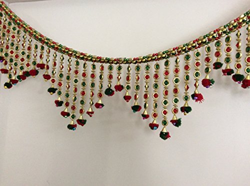 -. Binding : Kitchen -. Brand : Khushi's World -. Color : Gold with red and green beads -. Feature : Fits the standard size of door - toran is 42" / Washing instructions : hand wash with mild soap / handmade by expert craftsmen / Comes with Beautiful Goddess Laxmi Sticker for Diwali Puja -. IsAutographed : 0 -. Label : Khushi's World -. Manufacturer : Khushi's World -. Model : KWT002 -. PackageQuantity : 1 -. ProductGroup : Home -. ProductTypeName : HOME -. Publisher : Khushi's World -. Size : Length 36" X width 6" weighs 280 gms or 10 ounces -. Studio : Khushi's World -. Title : Christmas decor Toran/Door Valance Diwali Christmas Decorations Gift packing . Comes with Beautiful Goddess Laxmi Sticker for Diwali Puja