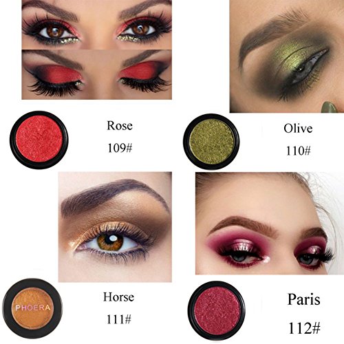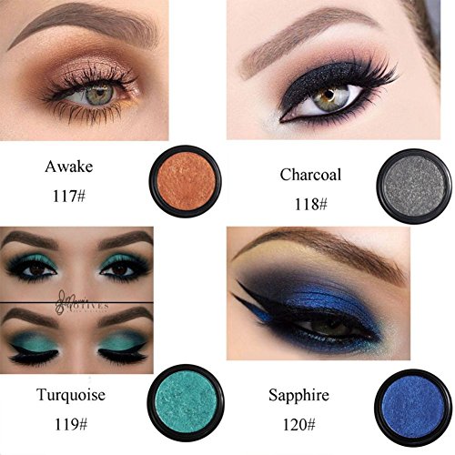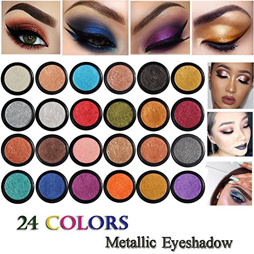 -. Feature : √ METAL TEXTURE & EASY TO APPLY - Metallic silty texture, Shimmering, lustrous pearls provide an intense, exquisite and smooth, this eyeshadow easy to apply. / √ BAKED TECHNOLOGY & SILKY SHEEN - Baked technology, silky sheen powders with a high pay-off concentration, without looking heavy. / √ LONG LASTING - Light texture but long lasting up to 8 hours.Portable size, can carry everywhere / √ RICH COLORS - 24 Colors, choose whatever you like: Cream, Champagne,Ice Blue, Nicole, Catrina, Dubai, Silver, Ice, Rose, Olive, Horse, Paris, Egypt, Mystery, Widow, Morocco, Awake, Charcoal, Turquoise, Sapphire, Movie, Salmon, Daisy, Provence. / √ PERFECT MAKEUP - Good pigment and natural look, no crease.(If you have any questions after receiving this eyeshadow, please contact us, thank you.)