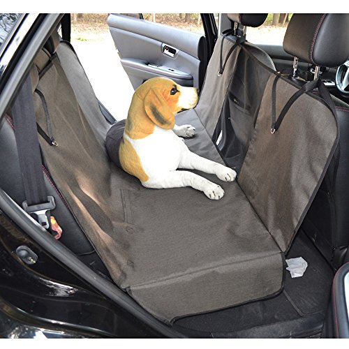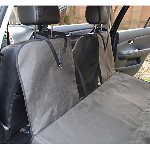 -. Feature : [The Mess Visual Window]The mesh breath window is great for the air to flow into the back to keep your pup cool. Visual window helps to reduce pup's anxiety when they see you through it. / [Convertible Side Flaps Design]The flap covering on pet backseat cover helps to not only prevent the drools staining seat,but also prevent from scratching window. / [Compatibility with Different Vehicles]Excellent size of 52.9in W x 54.9in L pet car seat covers, perfectly protect your car from scratches, hair or mud. Available for most cars,truck,automotives and SUVs, such as Honda CRV, Jeep Grand Cherokee,Chevy Silverado,Sedan ect.Not only for small medium dogs, also perfect for large dogs. / [Nonslip Backing&Durable&Comfortable]The car seat cover is designed with the rubberized anti slide bottom and seat anchors( push them down in the crack helps to keep the cover from shifting and coming off the seat ). Constructed out of heavy-duty oxford fabric and triple-layered padding for comfortable trip. / [1 Years Warranty]We covered this pet seat cover with 30days free replacement or refund,1 year warranty and whole life customer service from the date of purchasing.