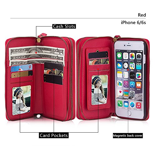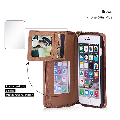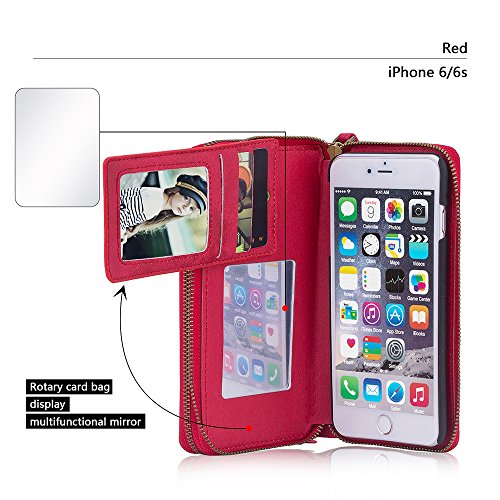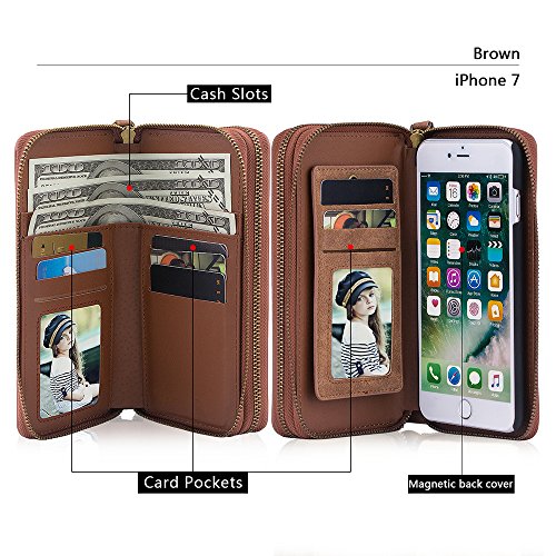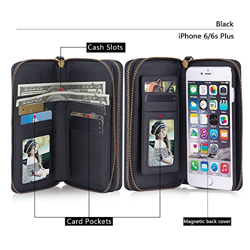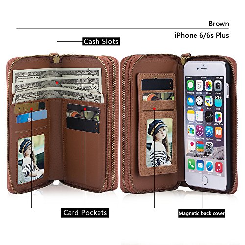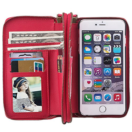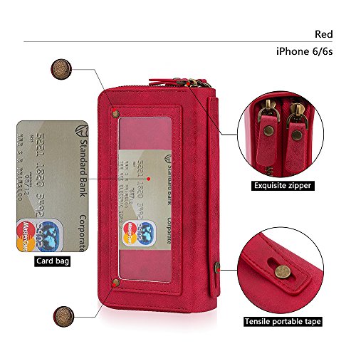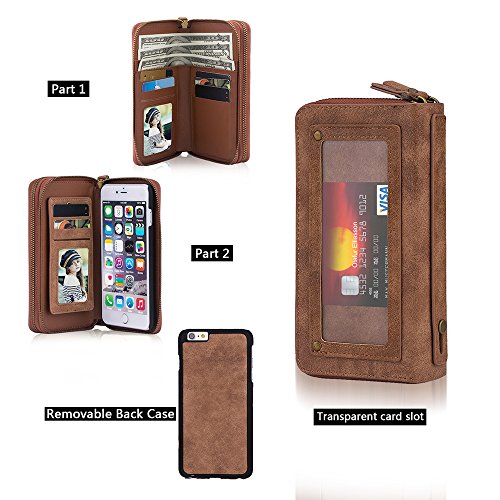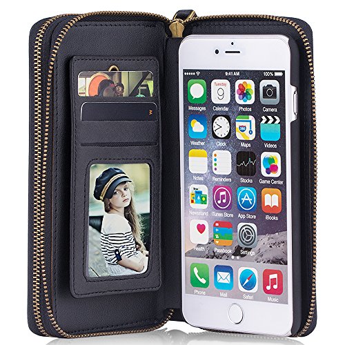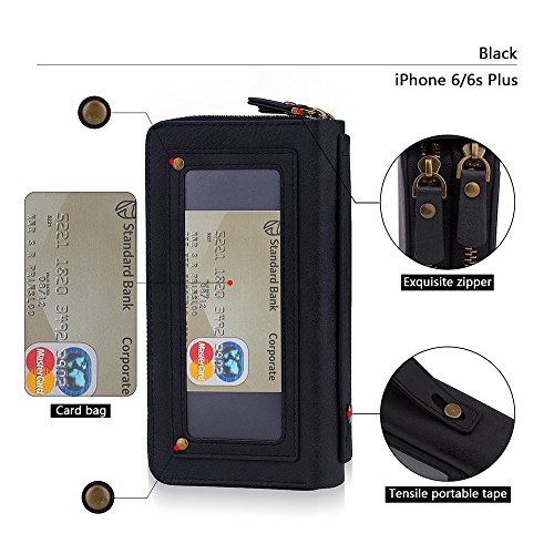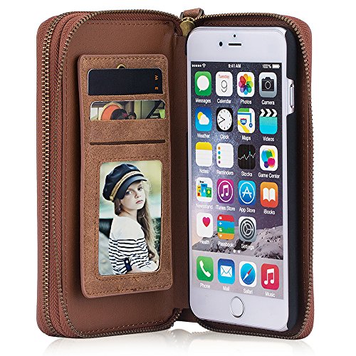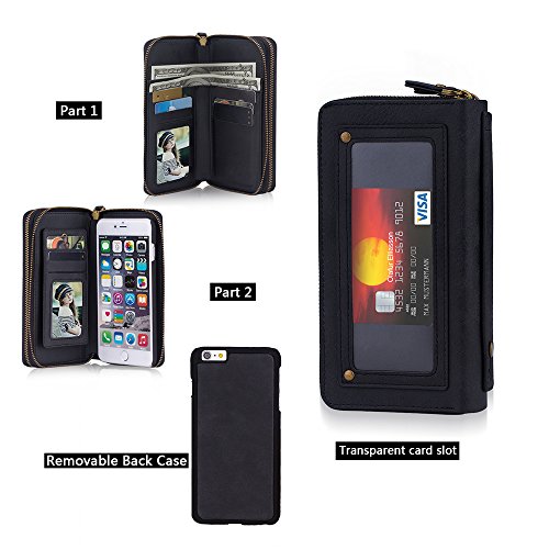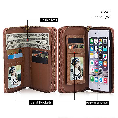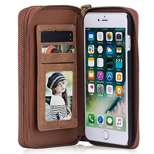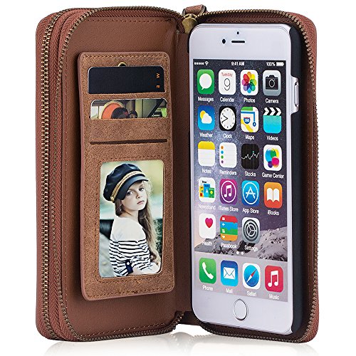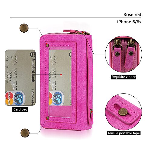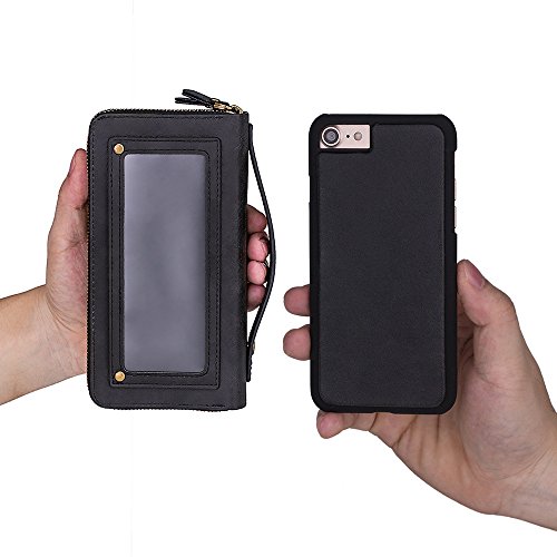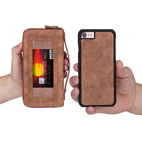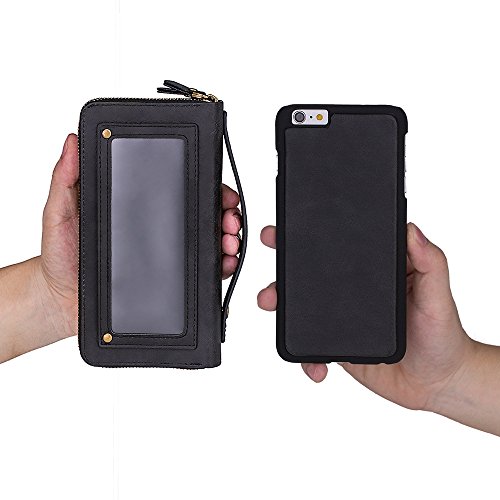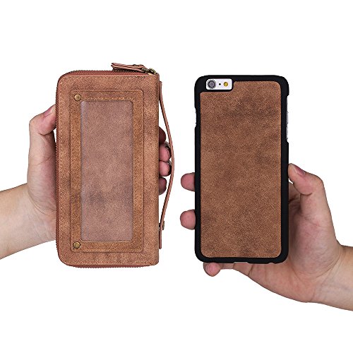 Binding : Apparel Product Description Phone Case Leather Wallet Case with Detachable Magnetic Back Cover for iPhone 5/6/7 Samsung Galaxy 6/7/8 2 IN 1 DESIGN Zipper Purse for Men Women 2 IN 1 DESIGN MULTIFUCTIONAL WALLET CASE This wallet includes muti-card slots including 2 ID window and 2 cash/change compartment allow to conveniently hold your ID card, credit card or cash. The smart Design allows you to easily flip the inner holder to access all your cards conveniently.Then you could leave your "big"wallet at home. FULL PROTECTION FOR YOUR PHONE SAFE AND LARGE STORAGE 1.Handcrafted from premium leather and the stitching is bold and reliable, which helps to protect the back side and hold the phone tightly; 2.Hidden magnet-closure secures the front cover; 3.What's more the zipper closure and snap button design is to make sure all thing stay inside securely. DETACHABLE MAGNETIC SLIM CASE with Wrist Strap GREAT BONUS With this detachable magnetic case,you can carry the case with the wallet folio or you can detach the case from the wallet if you want to carry only the hard case without the wallet.What's more,the detachable wrist strap, it will be more convenient for you to take you phone or enjoy video with it. GREAT GIFT IDEA The wallet phone case featuring "2 IN 1 DESIGN" "MULTIFUCTIONAL WALLET CASE" "Convenient"You must want to share the Convenient EASY TO GO Experience to your families or your friends. Yes, this might cost little extra but it's worth every penny - that's what our customers say. Why buy a mediocre gift for your loved ones or yourself - invest in this affordable luxury today ! 0