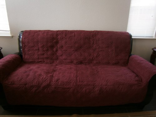 -. Binding : Kitchen -. Brand : FineHome -. Feature : quilted micro suede with fill in and none woven backing pet cover pad / Sofa can fit 64x74" width plus 20" flap on each arm cover / Love seat can fit 42-50" width plus 20" flap on each arm cover / Arm chair can fit 20-25" width plus 20" flap on each arm cover / easy machine wash. -. Label : FineHome -. Manufacturer : FineHome -. ProductGroup : Home -. ProductTypeName : HOME -. Publisher : FineHome -. Studio : FineHome -. Title : Quilted Wine / Burgundy Micro Suede Pet Sofa Loveseat Armchair Slipcovers Pad Protector