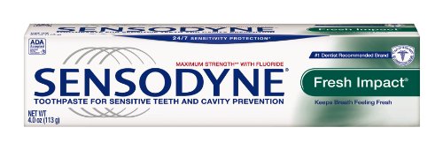 -. Title : Sensodyne Fresh Impact Toothpaste for Sensitive Teeth and Cavity Protection with Fluoride, Maximum Strength, 4 oz