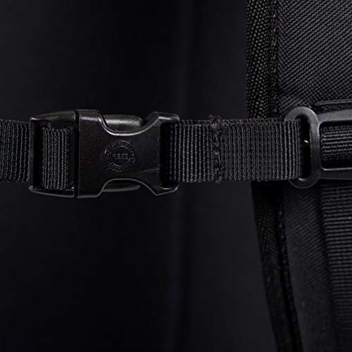 Contoured harness shoulder straps. Exposed 8pt plastic zippers