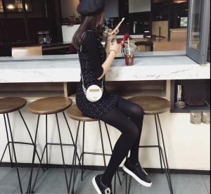 ブラックの落ち着いたトーンなので、ミニ丈でも大人にぴったり^^