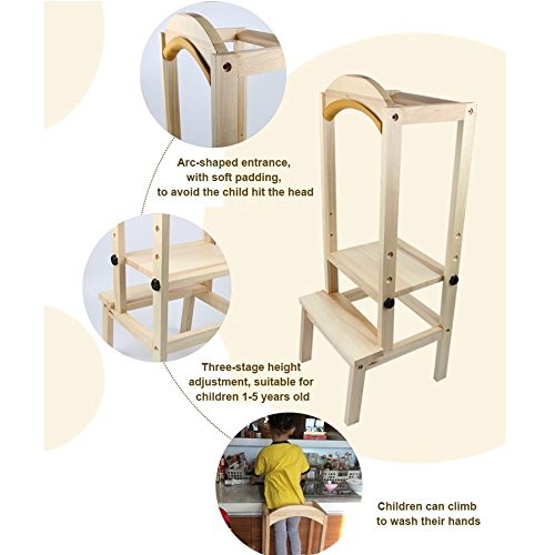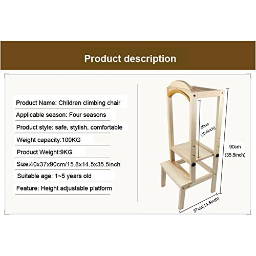 Studio : DAPU Home Co.,Ltd Publisher : DAPU Home Co.,Ltd Product Description Young kids are curious about everything,they like to climb everywhere.If you can't stop it,why don't you make it safer for them to climb with this kids step stool? With this learing tower,kids can help out in kitchen for baking,mixing,preparing food,cleaning up,or other hands-on situations.Kids can also climb up to wash dish and help kitchen errands.In bathroom,kids can use it to wash hands or brush teeth by themselves. Adjustable height for different stage of kids. Soft padding and Arc entrance allow easy and safe access. Fences around standing platform,so kids won't fall from high place. 2 steps stair for easy climbing. Max weight up to 100kgs for durability. Light weight design for easy movement. 0