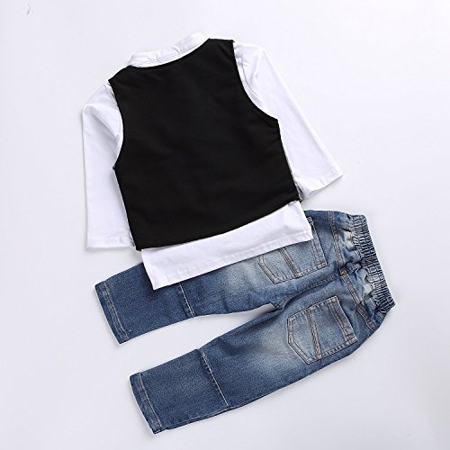 -. Binding : Apparel -. Brand : SUNBOY -. Department : baby-boys -. Feature : Shirt 100% Cotton,Vest Cotton Blend / Season: SP.R.Ing, Summer, Fall / T-shirt and Vest and Jeans 3 Pieces / Machine Handwash / Size:1-7years old -. ProductGroup : Apparel -. ProductTypeName : PANTS -. Title : Kids Boys Clothing Shirt and Vest Jeans Sets For 2 to 5 Years Toddler Boy