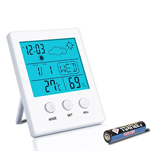 -. Feature : 【多機能】温度、湿度、時計、アラーム、カレンダーの5機能を搭載した卓上デジタル湿温度計です。スヌーズ機能も搭載しています。 / 【ライト】バックライトが付き、夜にもよく見えます。大型液晶画面に大きな文字で表示されるので見やすいです。 / 【正確性】温度範囲:0-50度。湿度範囲:10%-99%(RH) 48個の通気穴があるますので、データの正確性を確保できます。 / 【素敵なデザイン】卓上スタンド・壁掛け用フック穴が付いていますので、お好みの場所に設置できます。 / 【安心保証】ご購入日から12ヶ月の安心保証を提供いたしますので、もし問題があれば、お気軽にお問い合わせください。赤ちゃんの健康管理、インフルエンザや風邪などの予防対策、お肌への潤い環境チェック、カビ対策、熱中症対策などにも役立ちます。