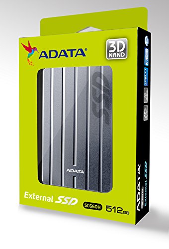 ADATA SC660H USB 3.1 Gen 1 external 3D-NAND solid state drive redefines portable storage by combining superior performance of SSD, improved 3D-NAND technology, convenient shock-resisting portability of external storage device at very budget-friendly affordability. SC660H external SSD features data transfer speed up to 440MB/s, compare to conventional external HDD at 90MB/s. Transferring large data files such as HD video movies takes literally seconds compare to minutes using conventional external HDD. Features the newest 3D-NAND technology, ADATA SC660H can achieve faster data transfer speed and increase durability while operating. Accidentally dropping or bumping of conventional external HDD can cause severe and irreparable physical damage to spinning disc surfaces, corrupting data permanently and rendering valuable content useless. Designed to offer all-around protection against shock, SC660H external SSD minimizes possible data loss due to impact and enhanced reliability over conventional external HDD. SC660H external SSD draws far less power than conventional external HDD, extending battery life of mobile devices. Without moving parts, SC660H external SSD is totally silent and generates very low heat than conventional external HDD. Available in 256GB and 512GB capacities, SC66H external SSD is compatible with Android, Mac OS and Windows, making file sharing across different OS platforms easy, fast and reliable. SC660H external SSD combines performance, durability, reliability, lower power consumption and silent operation all in one compact and lightweight package, giving a new definition to portable storage experience. ADATA SC660H external SSD comes with 3-year limited warranty for worry-free ownership experience.Feature