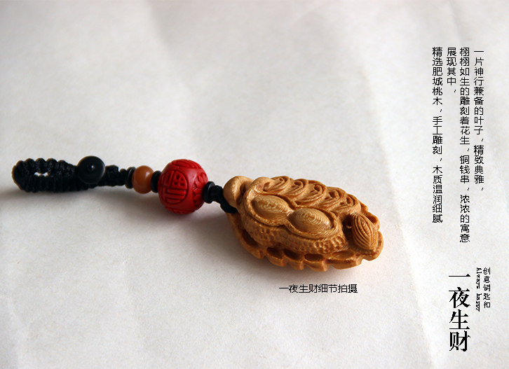 桃木一夜生财:高50mm*宽30mm,精制淡雅。