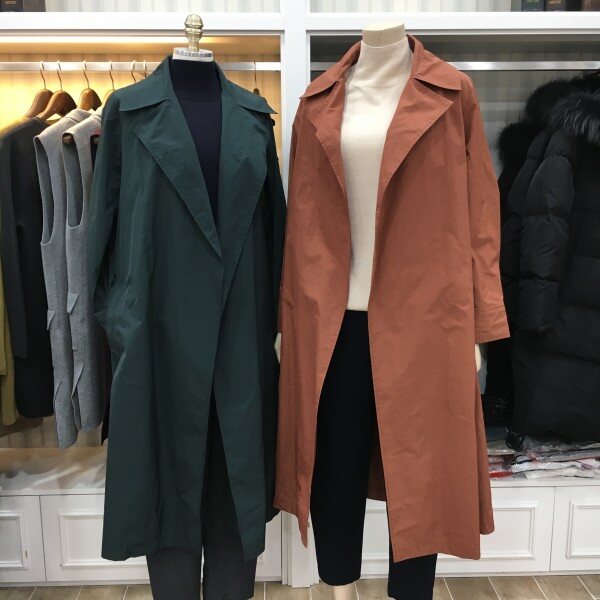 클래식한 매력의 트렌치코트입니다^^ 단추가 없는 숄 디자인으로 된 바바리이며 깔끔한 디테일로 더욱 안정감있는 착용감을 느낄 수 있는 베이직한 디자인입니다. 탄탄한 면소재로 제작되어서 봄,가을에 쉽게 활용하기 좋은 아우터구요. 단정한 디테일까지 세세한 부분까지 신경써서제작한 아이라 데일리하게 아무때나 막 걸치기 좋으며 종아리까지 길게 떨어지는 롱한 기장감으로 누구나 스타일리쉬 하게 즐기기 좋은 강추아이템이에요~! 색감이 흔하지 않아서 소장가치 좋은 제품입니다. 총장길이는 55사이즈 기준으로 109cm 입니다.