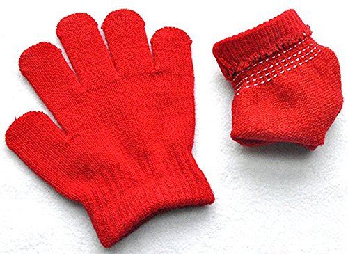 Knit Mittens Gloves For Kids Winter Magic Knit Gloves for Girls/Boys Solid Warm Gloves Black