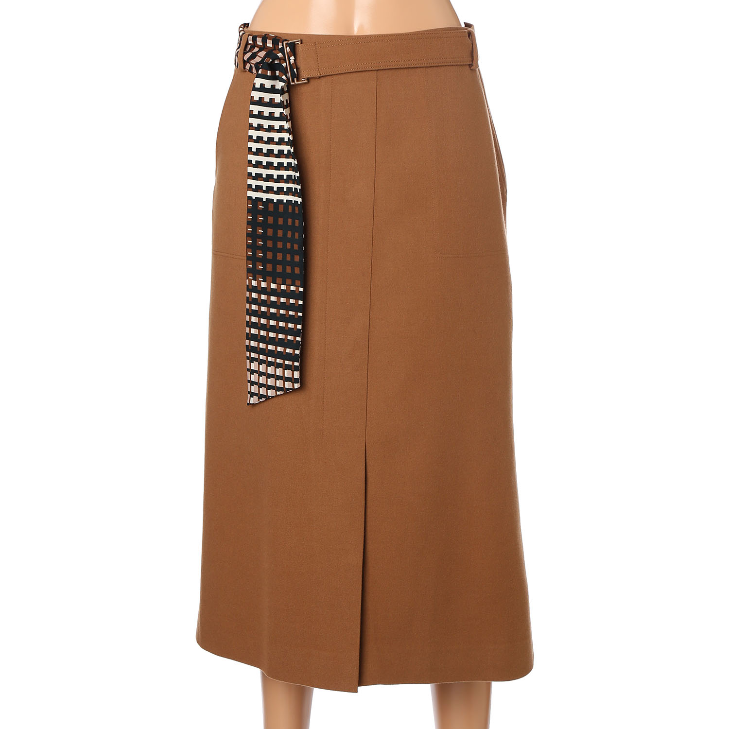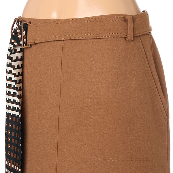 울 혼방 원단으로 제작되어 부드러우면서 우수한 터치감이 특징적인 A라인 스커트입니다. 앞뒤 절개 디테일이 더해져 활동하기에 한층 편안합니다. 패턴이 돋보이는 스카프 배색 벨트로 포인트 코디를 연출할 수 있으며 후면 지퍼 구성으로 탈착의가 간편합니다. 포켓 디테일로 실용성을 더하며 허벅지까지 안감 처리되었습니다.
