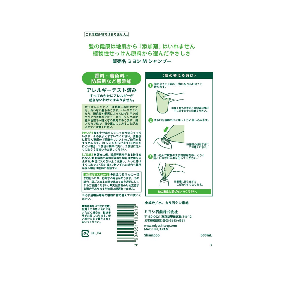 [Set goods] additive-free soap shampoo Refill 300ml × 2