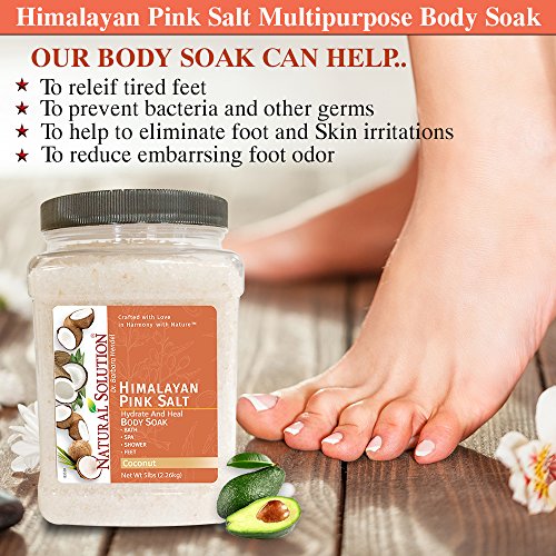 INGREDIENTS BENEFITS: Natural solution coconut body soak is composed of using Himalayan Pink salt that has amazing therapeutic properties. It can mineralize your body and relaxes the sore muscles and tired feet. The other ingredient Coconut has a number of benefits like it is a best moisturizer and ideal skin cleaner. It can also prevent pre-mature aging and fungus infection.