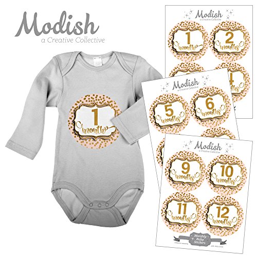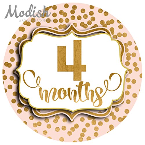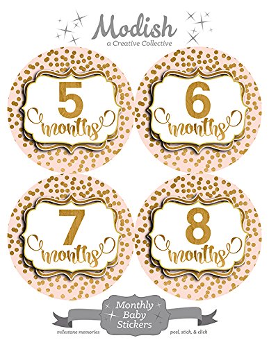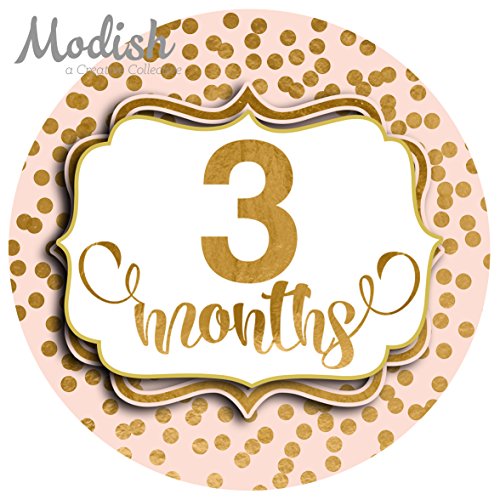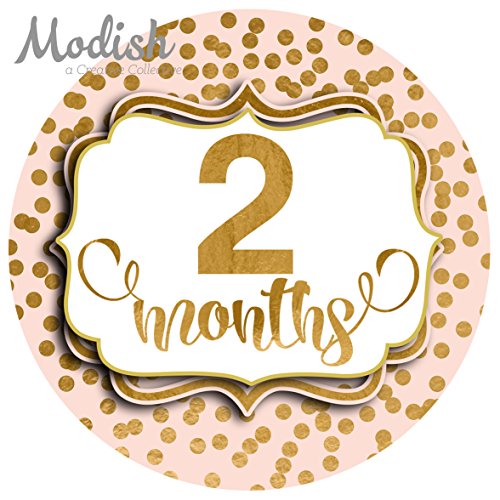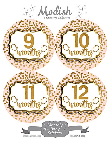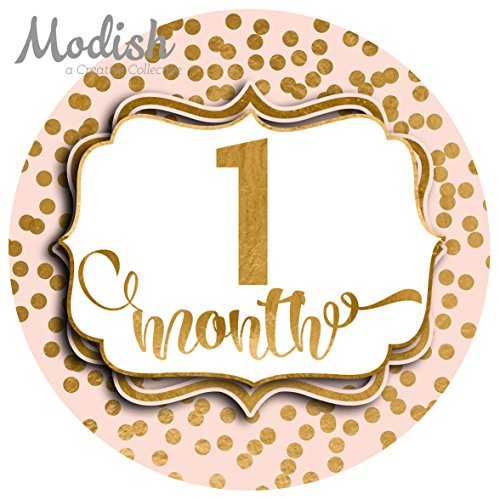 -. Title : 12 Monthly Baby Stickers, Pink, Blush, Gold Polka Dots, Baby Month Stickers Girl, Baby Book Keepsake, Baby Shower Gift