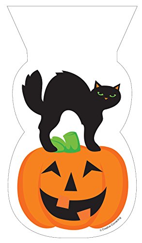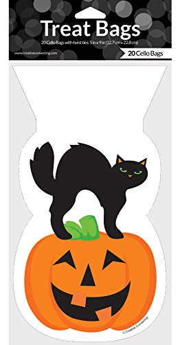 Creative Converting 20 Count Cat Shaped Cello Bags with Twist Ties, White/Black/Orange