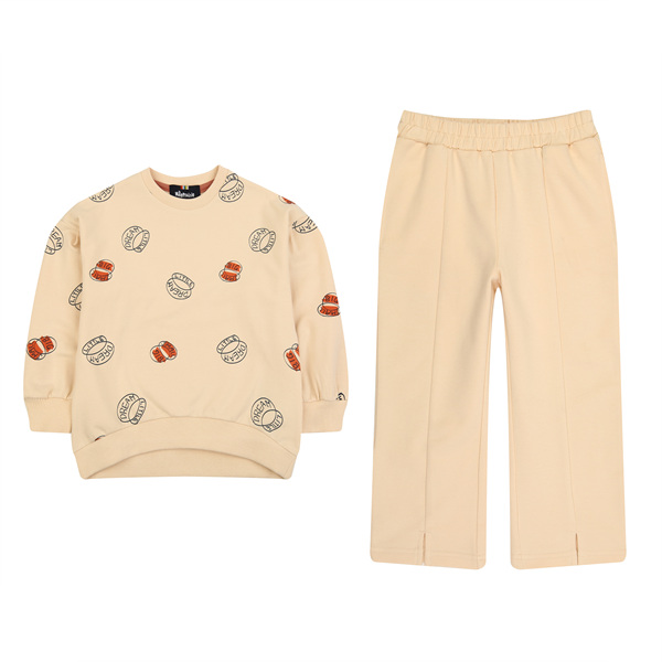 전판 그래픽 프린트 맨투맨과 밑단 트임 포인트 바지SET