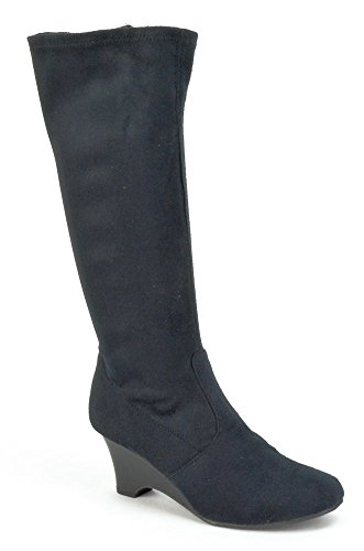 Product DescriptionAs essential as your little black dress. The tall Lena boots by Karen Scott feature a stretchy shaft for a customized fit and moderate wedge heel for comfortable height.0