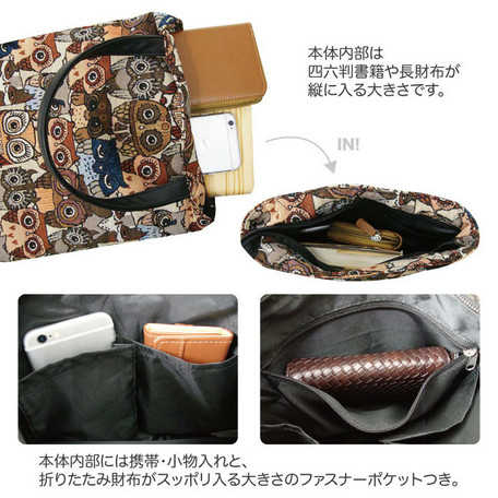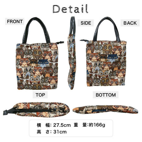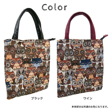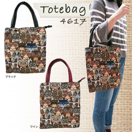 ゴブラン調のフクロウ柄がかわいいトートバッグです。