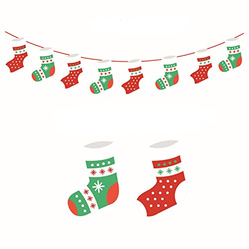 Christmas Paper Banners 10 Ft 8 Types 64 Pieces 2017 Newest Happy Hanging Festival String Flags Trees/Reindeer/Socks/Words for Outdoor&Indoor Christmas Party Decoration Xmas Ornaments