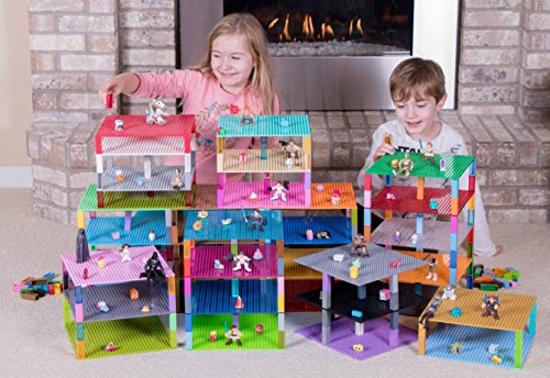 • These stackable baseplates and bonus construction briks are compatible with all market leading interlocking brick-based toys.